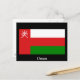 A bandeira nacional de Omã (árabe: ع ل ع م ا ن م ) consiste em três faixas (branco, verde e vermelho) com um bar vermelho à esquerda que contém o emblema nacional de Omã. O branco representa paz e prosperidade, o verde para a fertilidade e as Montanhas Verdes, e o vermelho para as batalhas contra invasores estrangeiros. O vermelho é também a cor da antiga bandeira da nação quando era simplesmente conhecida como Sultanato de Muscat e Omã. Até 1970, Oman usava a faixa vermelha das pessoas indígenas. Em 1970, o Sultão introduziu um novo conjunto completo de bandeiras nacionais. Foram acrescentadas bandas de cor verde e branca à mosca, tendo sido colocado no cantão o emblema nacional, o crachá da dinastia Albusaidi. Isto representa espadas cruzadas sobre um khanjar, um punhal curvo tradicional. White tem sido historicamente associado ao imã, o líder religioso de Omã e, por vezes, o rival político do sultão governante. Também simboliza a paz. O verde é tradicionalmente associado ao Jebel al Akhdar, ou "Montanhas Verdes", que estão em direção ao norte do país. Vermelho é uma cor comum nas bandeiras do estado do Golfo. Diz-se que o emblema nacional remonta ao século XVIII. Um punhal curvo é apertado sobre um par de espadas cruzadas. Um troço ornamentado liga as armas. Entre 1970 e 1995, o tamanho da banda média da tribanda era mais fino que os outros dois, fazer cerca de um quinto de sua altura, os outros bandas dois quintos. O alferes da Marinha mostra um campo de azure (azul), com a bandeira de Oman no cantão ou no quarto superior esquerdo e o emblema do serviço naval na mosca. O padrão do Sultão de Omã mostra uma mosca vermelha, com uma borda verde cuja largura é cerca de um sexto da altura da bandeira, cercada por uma borda vermelha com cerca da mesma largura. Ele carrega o emblema do país como uma carga no centro, o ouro colorido.