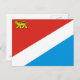 Cartão postal com a bandeira de Primorsky krai, bandeira com tricolor diagonal de vermelho, branco e azul, com uma carga de tigre siberiano no campo vermelho