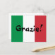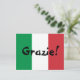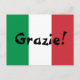 Obrigado, ou grazie, em italiano contra as cores da bandeira da Itália.