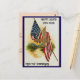 Uma bela reprodução de um cartão vintage do Dia da Independência, foi editado para o 250º aniversário da América, e tem uma reprodução de um cartão postal antigo no verso para que você possa escrever uma mensagem. Envie pelo correio ou dê como presente do Dia da Independência para adicionar um toque de capricho. Apresenta um design da bandeira americana com um grande 4.