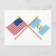 Cartão Postal Bandeiras cruzadas dos EUA e da Guatemala