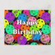 Cartão de aniversário festivo para um jogador de pickleball com confetes coloridos e balões de pickleball em um fundo preto. Balões azuis, vermelhos, verdes brilhantes, amarelos, rosa quente e lavanda feitos a partir de bolas de pickleball. O verso diz - Parabéns por mais um ano dominando a linha da cozinha! Espero que seu aniversário seja um sucesso! Seu Parceiro de Dinks. Personalize como desejar para seu pickleball favorito. Cartão postal de aniversário colorido com tema de pickleball para sua mãe, pai, tio, tia, irmão, irmã, vizinho, avô, avó, marido, esposa, amigo ou colega de trabalho que não para de falar sobre pickleball.