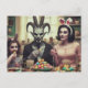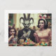 design gerado por IA um horror Baphomet senta-se à mesa da Páscoa onde a mãe e a filha estão a desfrutar de um pequeno-almoço de doces