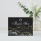 Elegante preto e ágata dourada decora a lateral deste moderno cartão de agradecimento de Bar Mitzvah. Personalize com seu nome sob a Estrela de Davi. Cartões perfeitos para uma família judia chic e elegante que celebra o chamado de um menino à Torá.