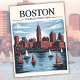 Esta ilustração destaca o horizonte de Boston a partir do rio Charles, onde veleiros pairam sobre a água sob um horizonte brilhante. Enquadrada pela arquitetura histórica de Massachusetts e arranha-céus modernos, ela mostra uma das paisagens urbanas mais reconhecíveis da região costeira da Nova Inglaterra, refletindo tanto a herança de Boston quanto a identidade da Costa Leste.