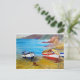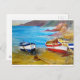 Uma pintura a óleo da minha coleção de paisagens marinhas com dois barcos velhos de pesca num porto com cordas grossas.