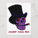 Barão Samedi, mestre dos mortos-vivos - crânio com olhos vermelhos penetrantes, vestindo um chapéu e fumando um charuto brilhante