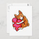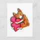 Da tinta original de Andie e dos lápis coloridos ilustração com um Basenji vermelho/branco apertando um travesseiro em forma de coração. (c)2014 Andie.