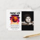 Cartão de agradecimento de aniversário com foto de esportes de bola de basquetebol. Este design moderno tem uma bola de basquetebol em um fundo vívido e vibrante. O tema de basquetebol torna-o perfeito para o aniversário de um fã de basquetebol. Adicione sua foto e personalize o texto.