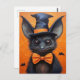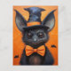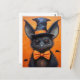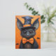 Este design ilustrado apresenta um morcego preto de olhos largos em um chapéu de bruxa e gravata arco laranja. Uma imagem deliciosamente assustadora perfeita para o correio de Halloween ou amantes de mini arte.