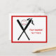 Baterias cruzadas de baseball e cartão postal horizontal preto e boné, vermelho, que apresenta um ícone de pictograma minimalista de morcegos de baseball cruzados, uma bola, um boné e seu texto vermelho sobre fundo branco com borda vermelha. Este design é um modelo e é completamente personalizável. Este design moderno e minimalista faz um presente perfeito para o jogador de beisebol na sua vida.
