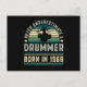 Cartão Postal Baterista nascido em 1968 Presentes de Bateria par