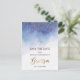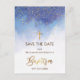 Batismo Elegante Salve O Cartão-Postal De Data. Design com fundo azul de aquarela e elementos de ouro na frente com cruz de ouro e batismo em formato de folha de ouro. Adicione mais detalhes na parte traseira do cartão postal. Para editar este modelo, clique em personalizar mais. (não serão utilizadas folhas de alumínio verdadeiras).