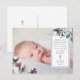 Simples cartão postal de agradecimento de batismo botânico apresenta uma simples cruz cinza prateada e uma doce mensagem de agradecimento personalizável com uma foto e uma borda floral nos cantos. O verso inclui seu endereço de retorno e texto personalizado adicional com uma segunda cruz cinza prateada. Agradece familiares e amigos por terem comparecido ao batismo cristão de seu filho com este lindo cartão postal de agradecimento do sacramento católico.
