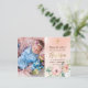 Elegante Cartão de Agradecimento de Batismo.. Design com fundo de cor rosa-bege em aquarela, moldura oval geométrica dourada e arranjo floral na frente com cruz dourada e Batismo em escrita de folha dourada. Adicione mais detalhes no verso do cartão. Para editar este modelo, clique em personalizar ainda mais.