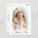 Nosso lindo cartões de agradecimentos batismo é uma bela manutenção projetada para capturar a memória precioso do dia especial do seu bebê. Este cartão apresenta três fotos personalizadas do seu pequeno: uma foto principal exibida no centro dentro de um elegante quadro de arco branco, com o nome do seu bebê mostrado no topo em uma fonte graciosa, semicírculo. Abaixo da foto principal, duas fotos menores adicionam um toque pessoal e destacam momentos especiais do dia. A design do cartão é completada com um símbolo delicado e dourado, na parte inferior, simbolizando a fé e a bênção. Pressione o botão para personalizar o cartão, você ficará encantado!