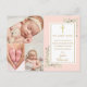 Colagem de fotos de batismo batizado com assinatura dourada cartão postal de agradecimento. Personalize com suas 3 fotos especiais e mensagem especial de agradecimento de batismo, batizado em letras douradas elegantes neste design moderno cor-de-rosa desvanecido. Criado por Thisisnotme©