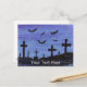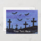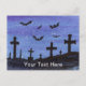 Uma paisagem aquática de morcegos em voo sobre um cemitério à noite adora este cartão postal personalizável!