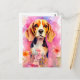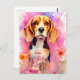 Cartão Postal Beagle com flores Aquarela