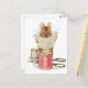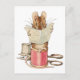 Este cartão-postal é uma reprodução de uma ilustração antiga de Beatrix Potter mostrando a um rato lendo um jornal chamado "O Alvo" enquanto sentado sobre uma colher de linha, com tesoura e um brilho ao fundo.