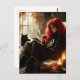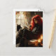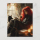 Cartão Postal beautiful witch and cat enjoying tea and a book