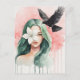 A beautiful woman with a flower over her face and a black bird watercolor fantasy AI generated art
