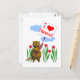 Cartão postal com minha design de um bonitinho personagem de castor segurando um cartaz que diz "Eu amo Nunavut" com coração.