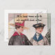 Este postal apresenta uma imagem antiga de duas mulheres, com o texto, "Somos amigos porque somos os únicos bebados respeitáveis da cidade."