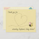 Este cartão-postal mostra uma abelha bebê com espaço para dizer uma obrigado rápida nas costas. Esta design também combina com designs de Revelação de Gênero de Abelhas Bebidas pela Menagerie de Night Owl, 2018.