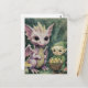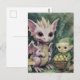 Cartão Postal Bebê Dragão Roxo Fofo e Elfo Com Ovos