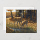 Cartão Postal Bebendo Whitetail Doe e Fawn de um Stream