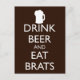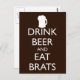 Divertido para Oktoberfest. BEBER CERVEJA E COMER BRATS com uma caneca de cerveja. Design baseado na moralidade britânica de 1939, poster "Mantenha calma e continue".