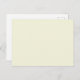 Cartão-postal "bege" de cor clara e sólida (com cor apenas na parte frontal). O bege é um amarelo acinzentado claro; um tom muito claro de amarelo. Clique em "Personalizar" para mudar de cor ou para adicionar texto ou design. Código hexadecimal do produto: #f5f5dc