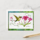 Um cartão de saudação tamanho postal com Beija-Flor e flores enroscadas com uma saudação que pode ser facilmente alterada para qualquer ocasião.