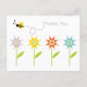 Um cartão postal de agradecimento com um delicioso surto de cor com flores delicadas vermelhas, azuis, roxas e amarelas. Um beija-flor alegre está zumbindo acima com as palavras - Obrigado! – uma maneira perfeita de expressar gratidão. Uma ilustração original do Mango Moon Studio.