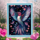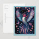 Cartão Postal Beija-Flor Mágico Asas Íris Flores Rosa