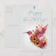 Um beija-flor voando coberto de girassóis cor-de-rosa, tulipas e aléias
