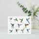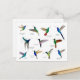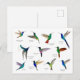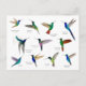 Cartão postal para amantes de beija-flores com várias espécies pintadas à mão de beija-flores tropicais, como beija-flores Coronet Violeta-púrpura, Starfrontlet de garganta azul, Jacobin de pescoço branco, Safira de cauda dourada, Starfrontlet escuro e beija-flores de barriga preta. Imagens tiradas de minhas pinturas originais em aquarela.