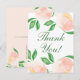 Item chic e bonito de agradecimento com flores de pêssego em aquarela e folhagens, frente branca e verso em pêssego pastel adorável.
