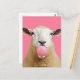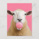Uma linda ovelha branca mastiga chiclete cor-de-rosa fantasia de chiclete AI gerou arte