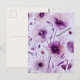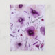 Flores em aquarela em roxo decoram este cartão postal de saudação personalizado com uma mensagem FELIZ ANIVERSÁRIO na frente. Personalize-o adicionando seu próprio texto na frente ou no verso do cartão. Disponível também como cartões dobrados, cartões postais e downloads digitais. Envie-me uma mensagem se você gostaria de algo personalizado.