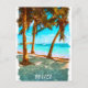 Cartaz tropical que apresenta a bela paisagem e paisagem do famoso destino de viagem Belize com as suas praias de caribe respiratórias. Incrível lembrança de viagem e ideia de presente para cada turista.