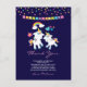 Obrigado de festas com 2 unicórnios dançantes bonitos com caudas brilhantes e coloridas, e mano. Um arco-íris colorido com nuvens em cada lado acima de suas cabeças. Outros elementos incluem uma pequena flor, um coração e algumas estrelas. Fundo roxo escuro. Pontos de confete coloridos e uma imagem de banner de bunting ao longo do topo.