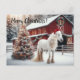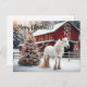Belo cavalo branco vestindo um papai noel sentou-se com uma árvore de Natal iluminada e um cartão postal vermelho rústico Enviem as saudações de sua temporada com nossa enorme seleção de cartões de Natal no Zazzle! Passe mensagens calorosas e sinceras para seus entes queridos com cartões postais de Natal que eles vão adorar!