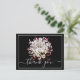 Fotografia aproximada impressionante de um belo crisântemo decorativo vermelho e branco contra um fundo preto. A flor cobre a frente deste cartão postal que pode ser usado como um cartão de agradecimento, um cartão de aniversário ou qualquer outro cartão de sua escolha. Personalize-o com seu texto e/ou imagens para torná-lo único!