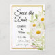 Lindas margaridas brancas são acentuadas com folhas em forma de ouro. Todo o texto na frente e no verso são personalizados. Pode ser personalizado em qualquer ocasião. Esta é uma ilustração digital.