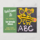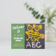 Este é um excelente de boas-vindas de volta ao cartão escolar com crianças de segundo plano desenhando em letras de giz abc. A melhor parte é que você pode personalizar isso adicionando um nome de professor e suas próprias palavras.