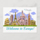Bem-vindo à Europa Crie o seu próprio cartão postal de férias! Qualquer vista que vocês tenham visto, qualquer monumento com que se apaixonaram, pode ser adicionado ao seu cartão postal com a nossa ferramenta de personalização.