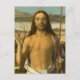 Vintage de Cristo ressuscitado dos mortos na Páscoa. Ele levanta a mão em bênção. Arte fina do italiano Giovanni Bellini.