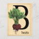 Um design de flashcard estilo vintage com a letra B e arte gerada por IA de beterrabas